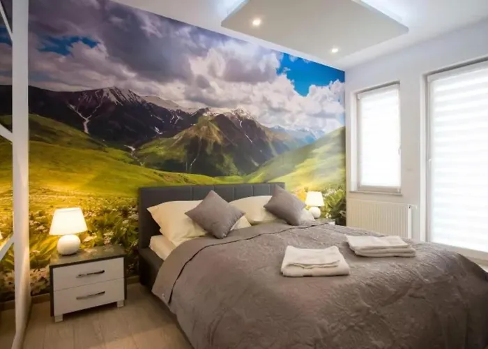De accommodatie heeft een waterkoker, een koelkast en een broodrooster in een complete keuken. Gasten zullen genieten van Poolse maaltijden in Stamary Restaurant, gelegen relatief dicht bij het appartement. Het appartement is te bereiken op 5 minuten wandelafstand van Nowotarska Szkola bushalte. Deze accommodatie heeft tevens een bubbelbad, een sauna en een overdekt zwembad. In de omgeving kunt u verschillende activiteiten ondernemen, zoals wandelen en fietsen.